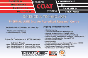 The 1990's proved to be the decade of "downsizing", and corporations with long histories of successful R&D projects are now finding themselves in a position where budgets have been cut and research financing is scarce. It is quickly becoming apparent that research collaborations between industry and academia, industry and government, and industry with industry, are the only viable ways to insure research continuity. This trend has created enormous potential for companies like Thermal-Lube. Thermal-Lube has always made a serious commitment to the research and development of new products and views this as an integral part of its future. In support of the many research projects completed over the past ten years, the company has been certified and accredited as a research facility by both the Federal and Provincial governments.